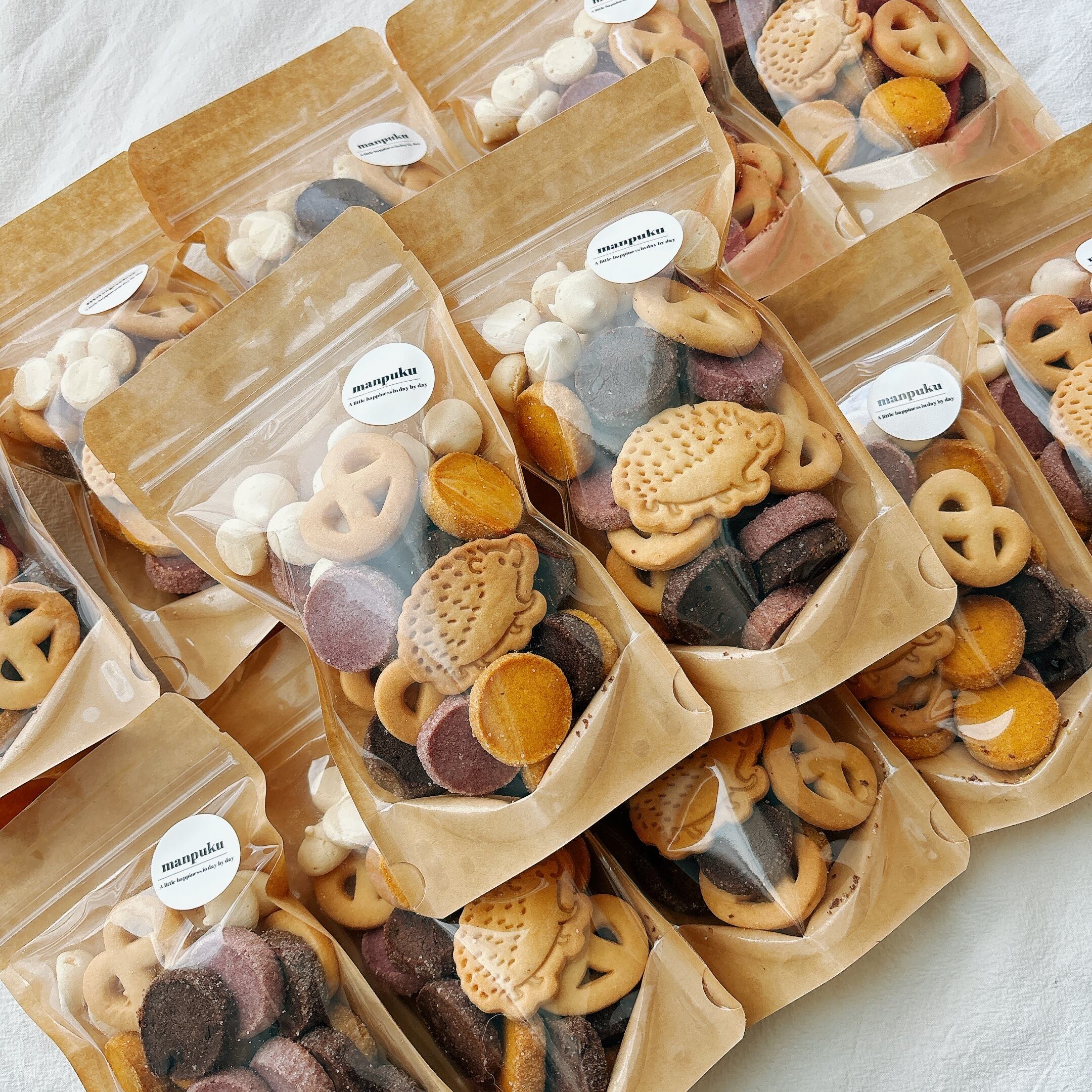 食感や風味の違いを楽しんで頂けるように素材にこだわった5種類のクッキーを詰め合わせた秋らしいクッキーミックスです。